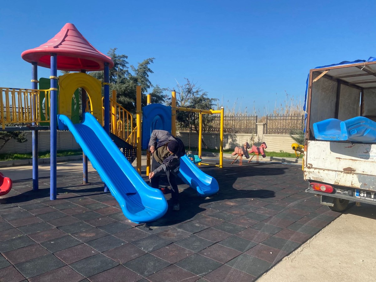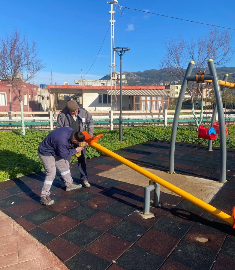 Öte yandan parklarımızda bulunan yıpranmış oyun gruplarında bakım ve onarım çalışmaları yapılarak çocuklarımız için daha güvenli oyun alanları oluşturuluyor. Park ve refüjlerdeki ağaçların olumsuz hava koşullarından etkilenmemesi amacıyla herek bağlama çalışmaları da ekipler tarafından sürdürülüyor.